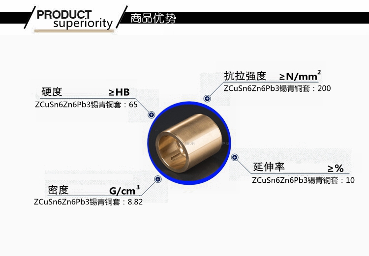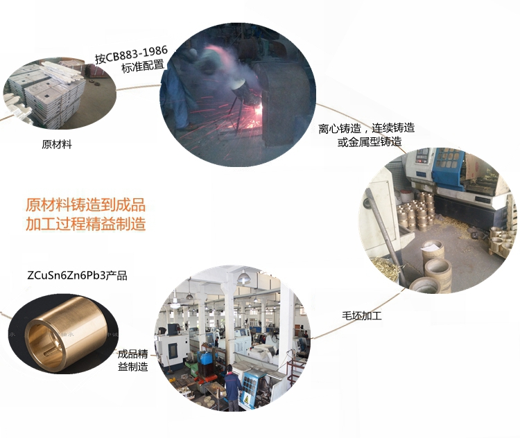 本產(chǎn)品實行CB883-1986標準………………………………………… 根據(jù)客戶產(chǎn)品需求我們提供的鑄造方式有:離心鑄造,連續(xù)鑄造和金屬型鑄造?!?牌號ZCuSn6Zn6Pb3合金銅化學(xué)成分:Cu余量 Sn5-7 Pb2-4 Zn5-7 Fe0.4 Al0.05 Si0.05 Sb0.3 P0.05